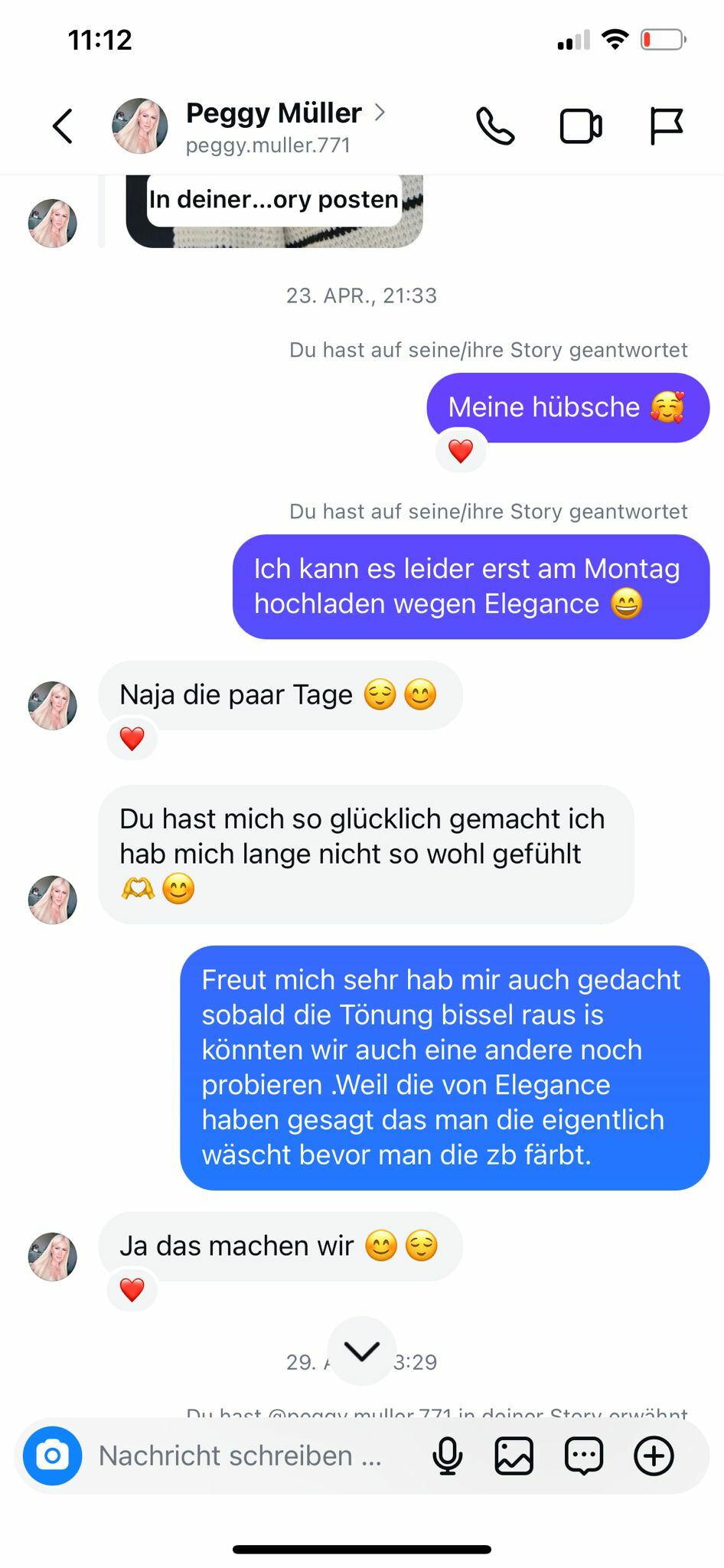 "Ich liebe deine Arbeit! Mein Blond war immer mega schön danach, und meine Haare sind viel gesünder geworden. Auch deine Pflegetipps für zu Hause waren hilfreich."